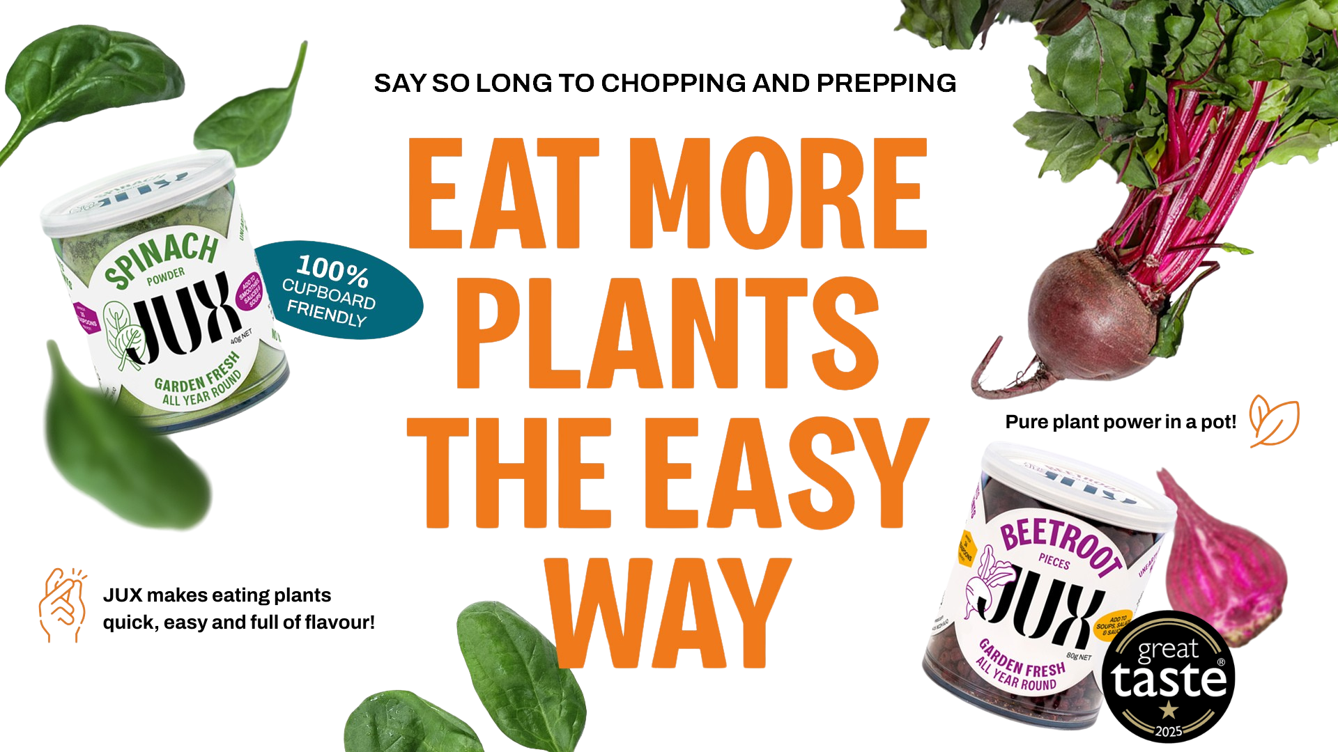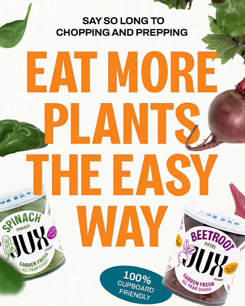 Whether you shop for fresh or traditionally dried ingredients, it's always come at a cost - short use by dates, dull flavours - not with JUX. We harvest our plants at their peak and preserve them through freeze-drying, with a splash of liquid they're right back to a fresh-like state. We know it all sounds a bit space age, but it's simple really, freeze-drying removes just water, nothing else. Our process is 100% natural, no nasties and no nonsense, just pure plant power. When you use JUX, you're getting the cream of the crop at your convenience!