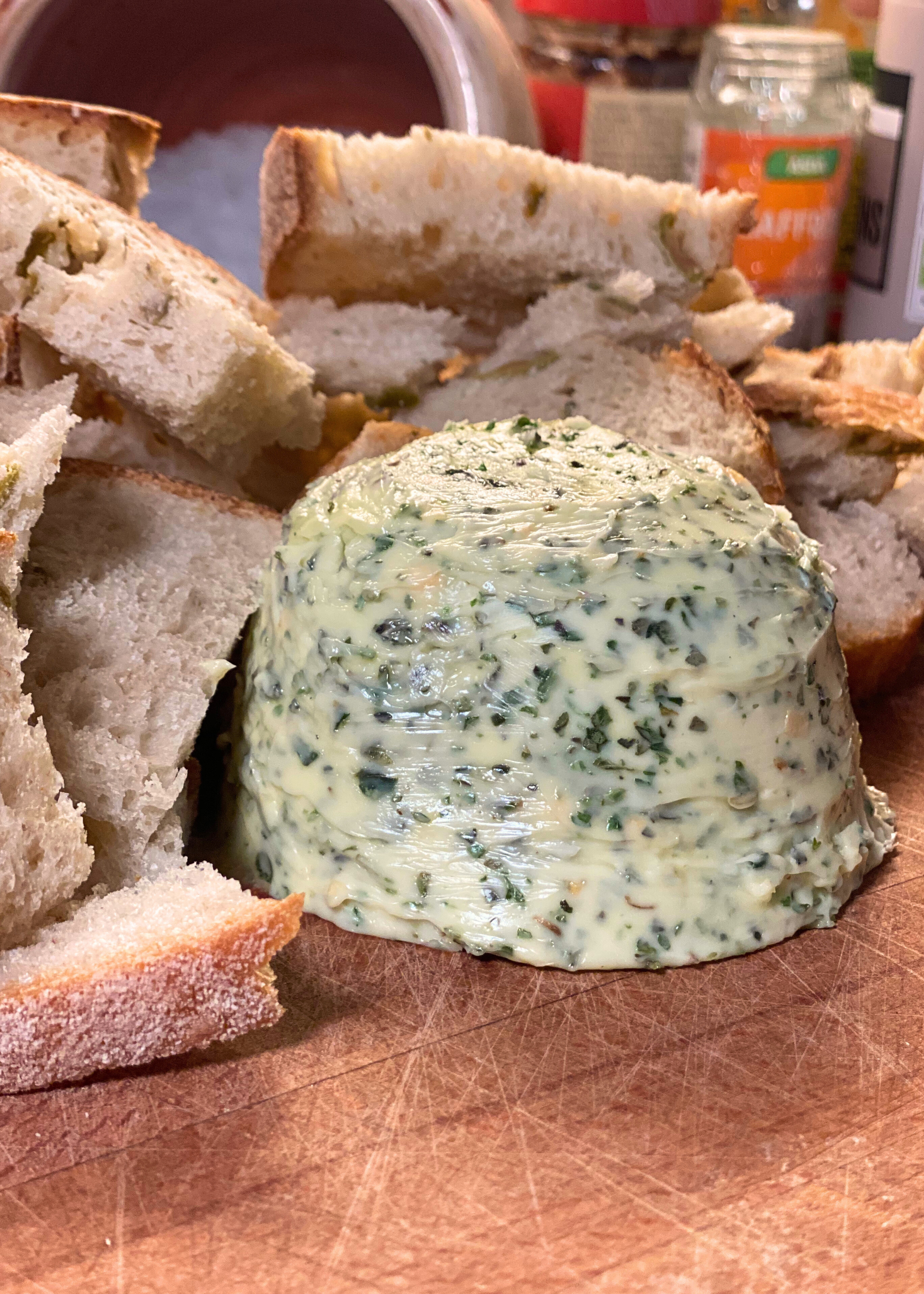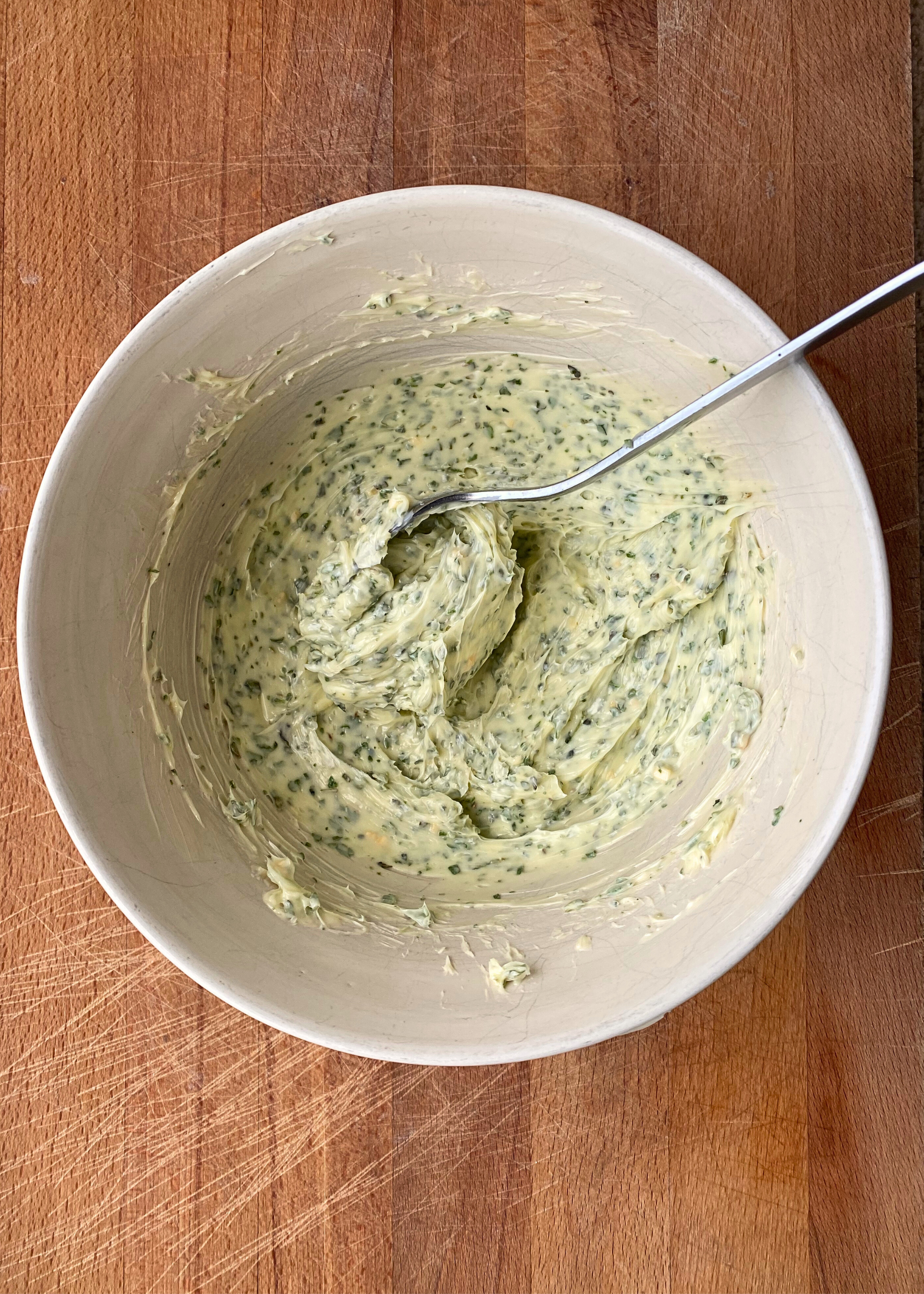 You can also make a batch to keep in the freezer: it goes fabulously with meat and fish dishes. You’ll need a small rounded bowel to set the butter. If you can, use good-quality butter. You’ll notice the difference in taste!
