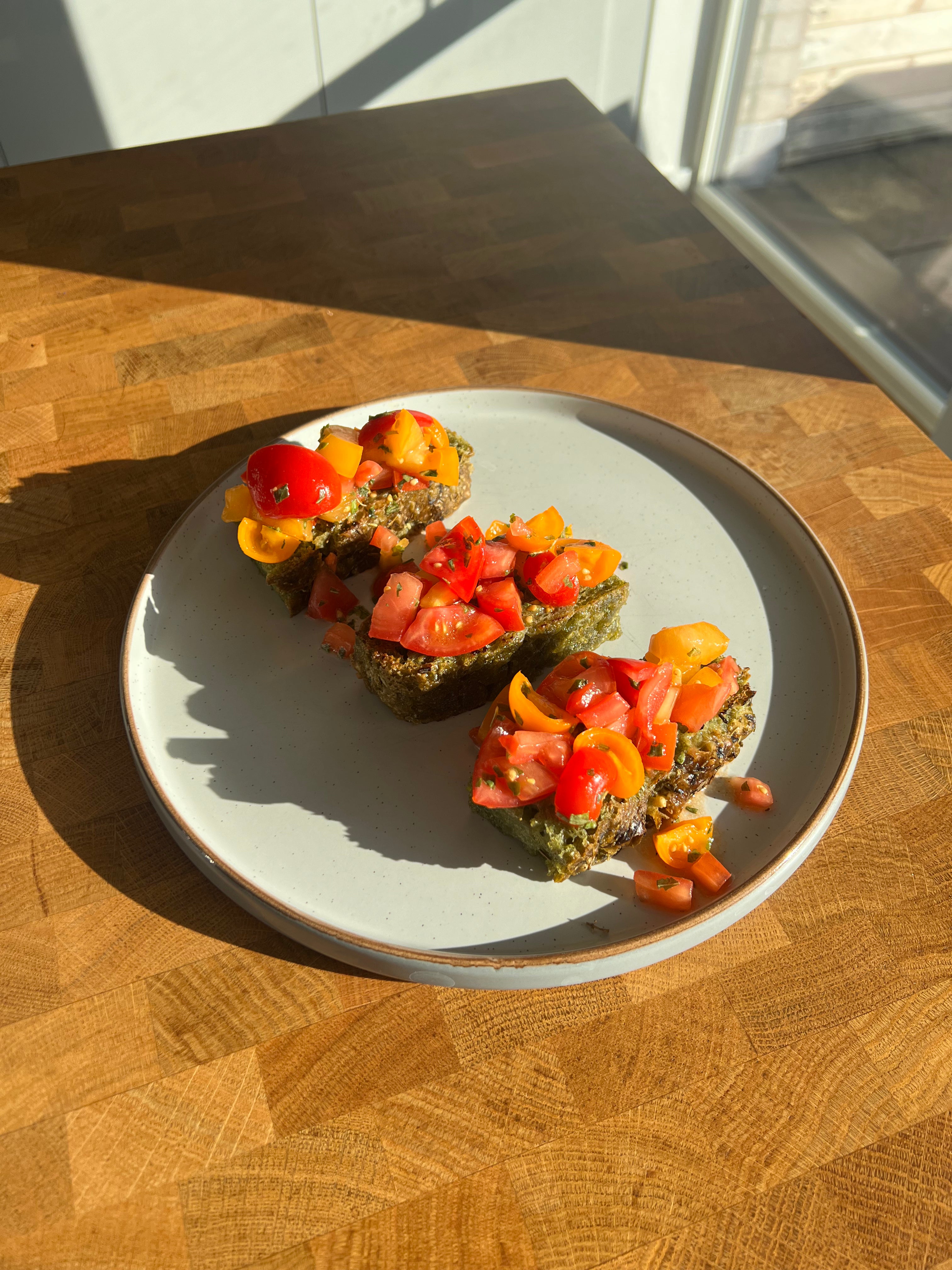 If you’re looking for a fresh, vibrant dish to impress your friends or family, this Spinach Focaccia Bruschetta is it! We’ve partnered with IOW Tomatoes to bring you the juiciest, most flavour-packed tomatoes, paired with the goodness of JUX Spinach Powder and herbs. The result? A crispy, herb-infused focaccia topped with juicy tomatoes, fresh basil, and a drizzle of olive oil that’ll have you going back for more.