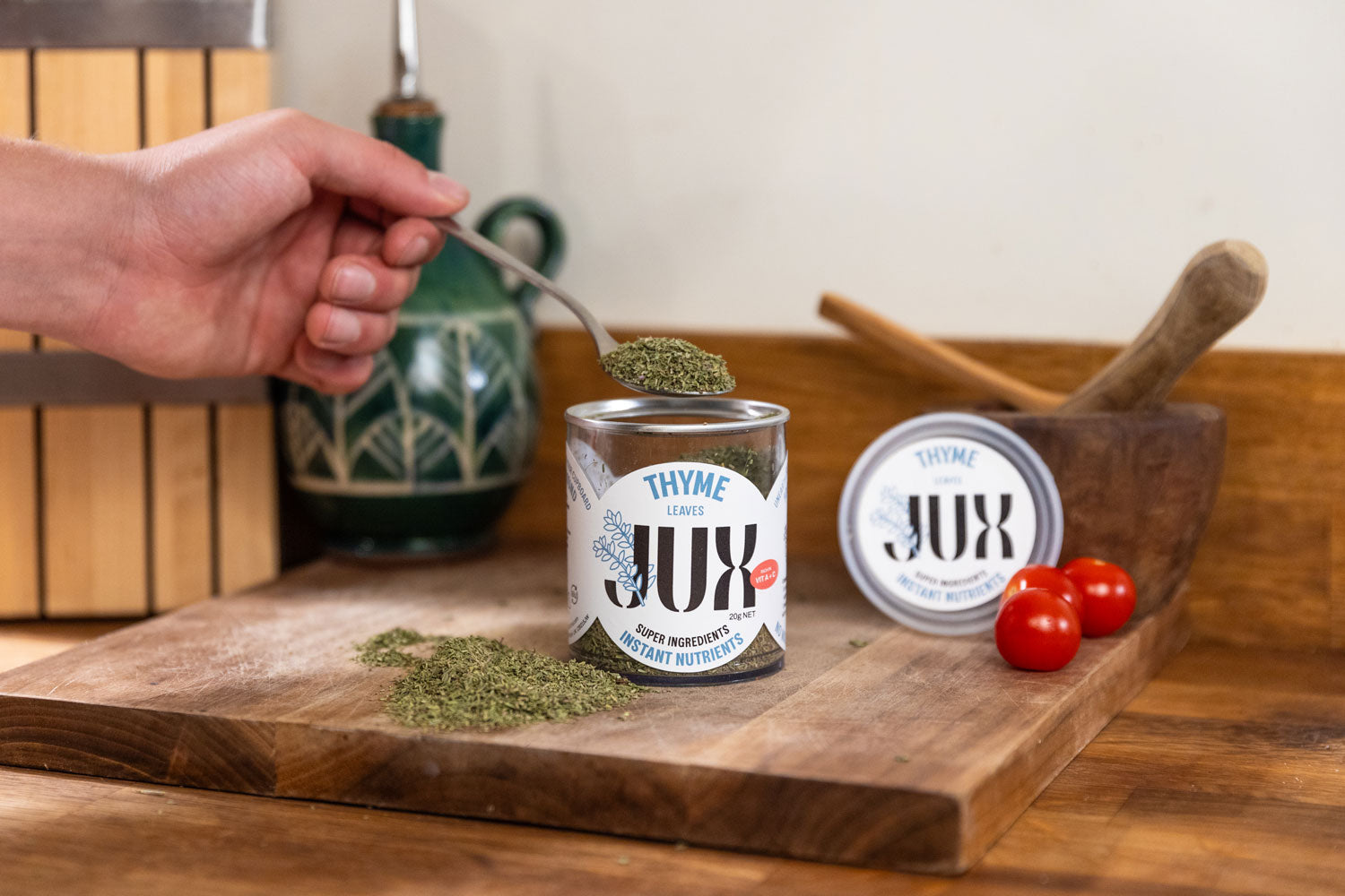 - Add 2 teaspoons of your JUX Herb of choice (we used Rosemary!)